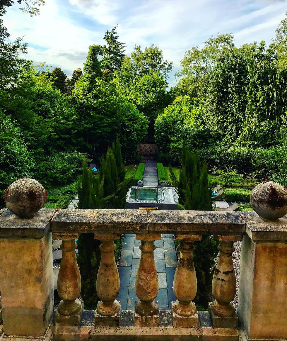 Alexander House is famous for its spa, and the main reason people visit to relax in the luxury surroundings of the Sussex countryside. The Grecian-themed spa earns Alexander House its 5* rating; indoor pool with Tuscan columns, zen garden with outdoor Scandi-style hot tub, sauna and steam rooms, gym, hair & nail salon for pampering, outdoor tennis courts and over 25 treatment rooms. We changed straight into our swimmers and robes and headed straight to the zen garden....